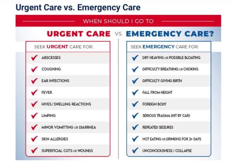 For concerns outside of normal business hours please see our guidelines below for emergency versus urgent care options.